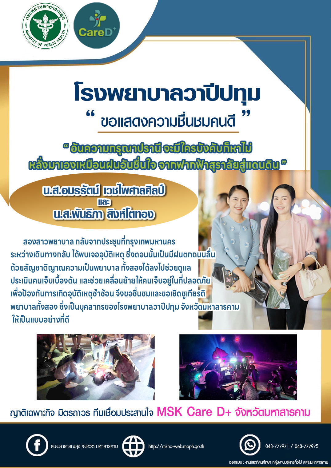 พยาบาลทั้งสอง ซึ่งเป็นบุคลากรของโรงพยาบาลวาปีปทุม จังหวัดมหาสารคาม